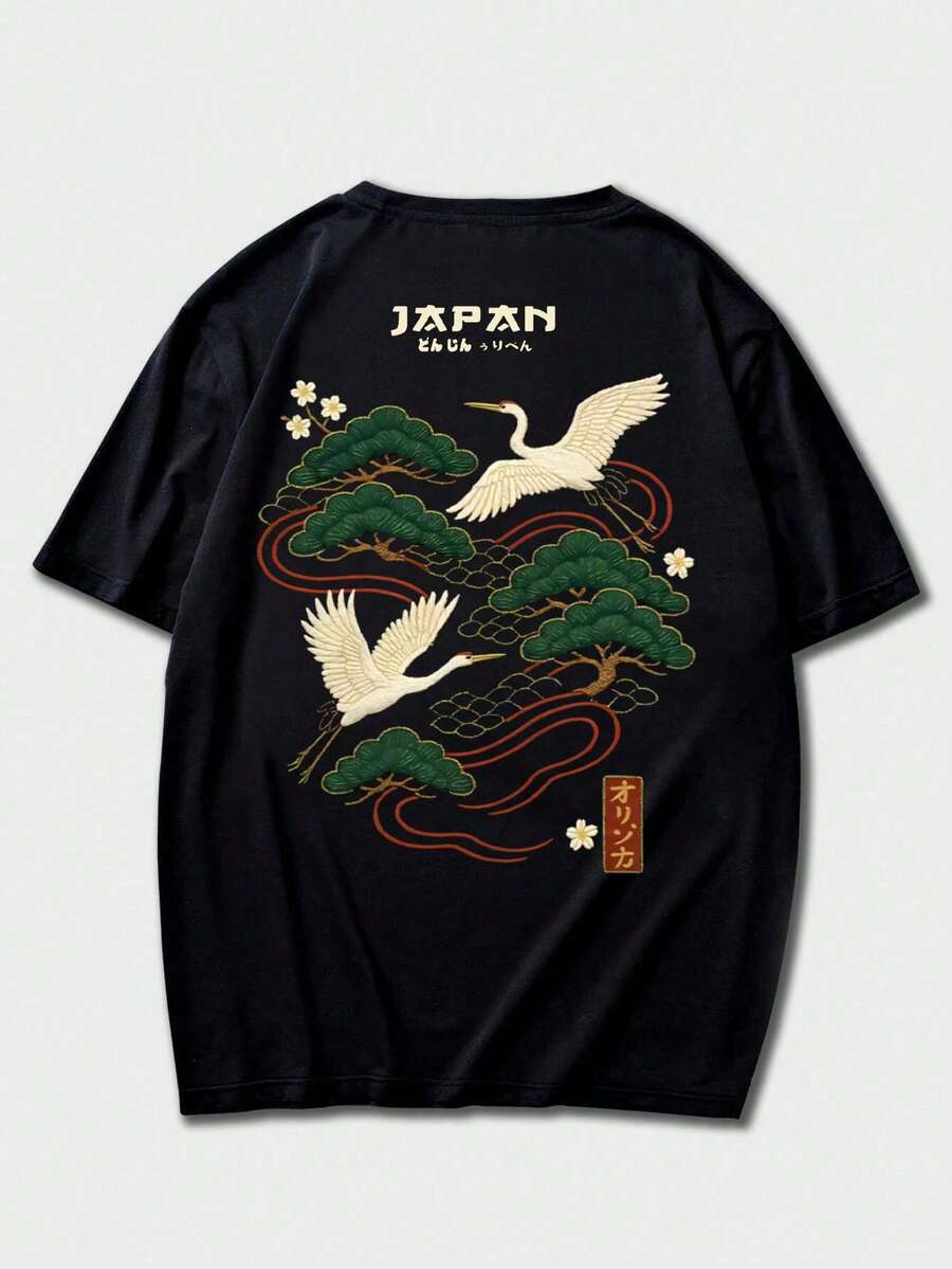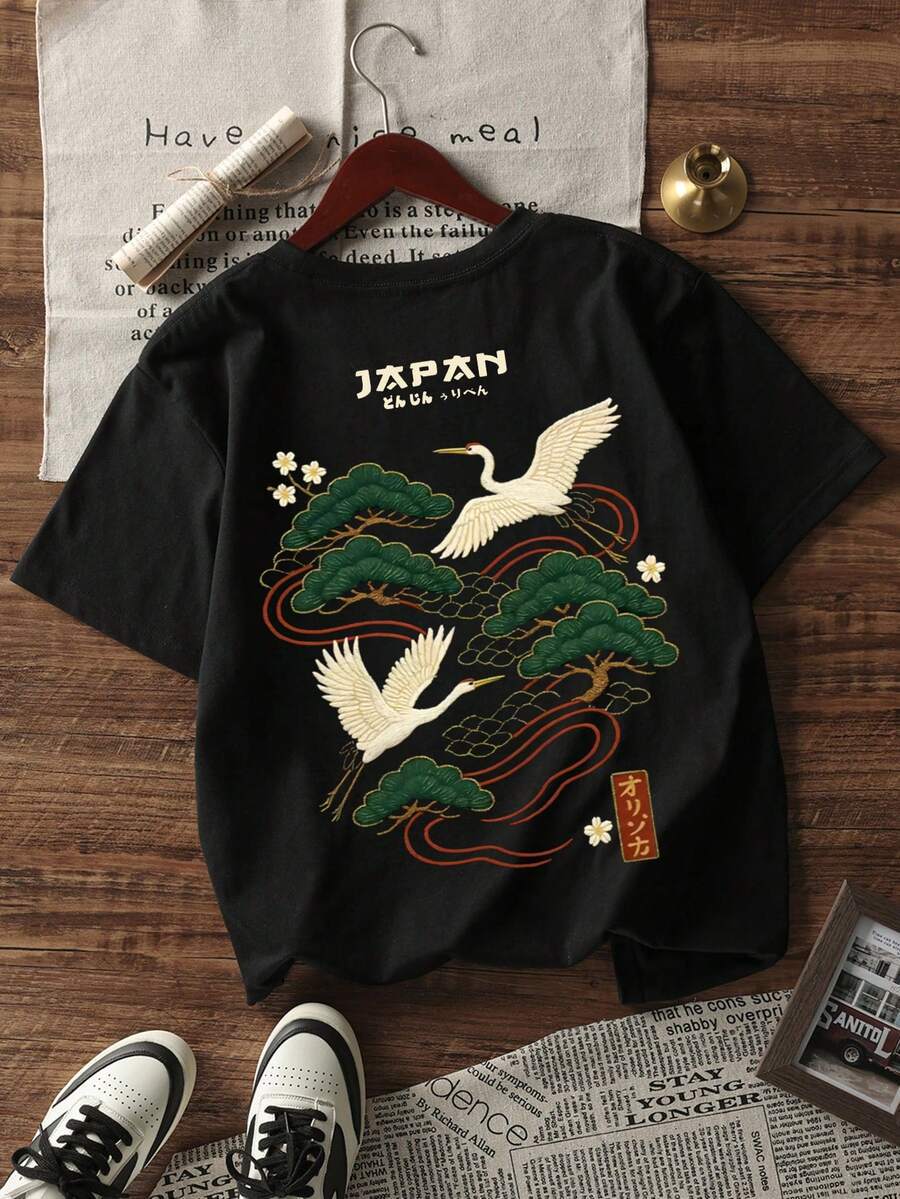 Men's Casual Versatile Simple Japanese Crane Print Top